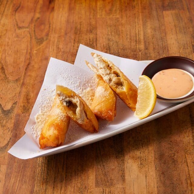 パリッサクッとした皮の中に鶏ときのこのとろっ餡を包んだ春巻です。